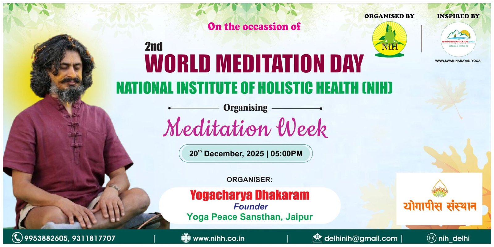Hotel Clarks Amer, Jaipur Clarks Amer Hotel, Jawahar Lal Nehru Marg, opposite FORTIS ESCORTS HOSPITAL, Lal Bahadur Nagar, Chandrakala Colony, Durgapura, Jaipur, Rajasthan, IndiaImmerse yourself in the profound experience of Osho Omkar Meditation, guided by the esteemed Yogacharya Dhakaram. This transformative session is designed to awaken inner peace and elevate your spiritual energy. 📅 When: 21st December 2025 , 6 - 8 AM 📍 Where: Rani Mahal Banquet, Hotel Clarks Amer, Jaipur 🎉 Event: World Health & Wellness […]