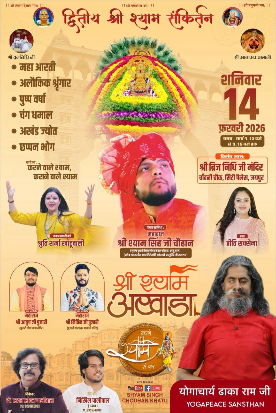 🙏 जय श्री श्याम 🙏 सप्रेम निमंत्रण परम कृपालु, दीनदयाल, हारे का सहारा, तीन बाण धारी श्री श्याम बाबा की असीम अनुकंपा से श्रद्धा, भक्ति एवं संकीर्तन से परिपूर्ण द्वितीय […]