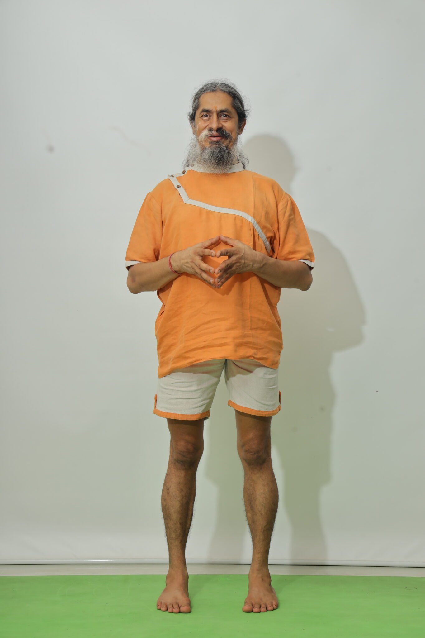 - दाहिना हाथ कंधे के समानांतर उठा होना चाहिए।