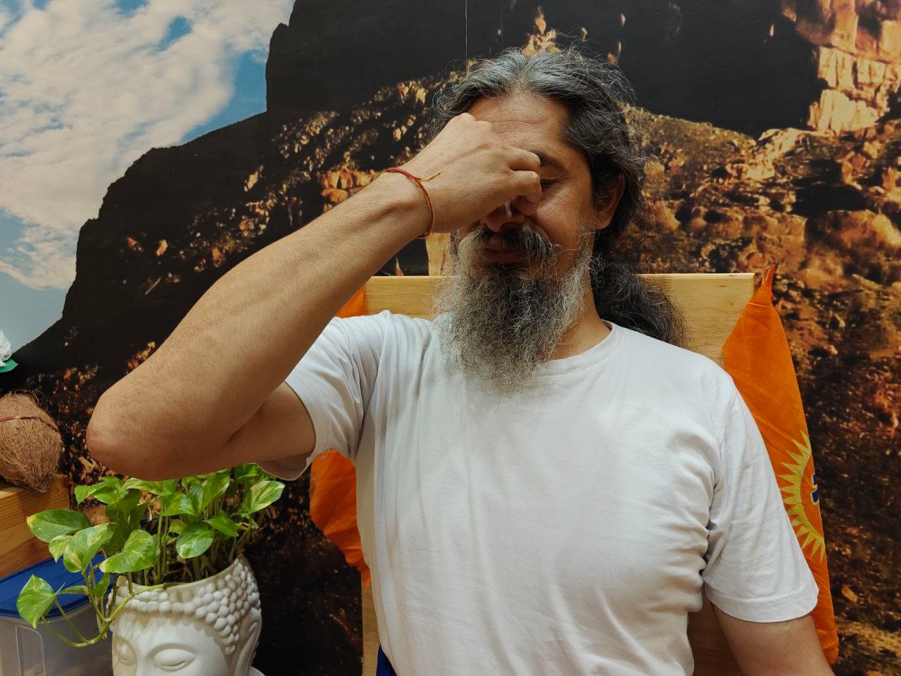 जब हम बाएं नथुने से श्वास अंदर लेते हैं और दाहिने नथुने से श्वास बाहर छोड़ते हैं,