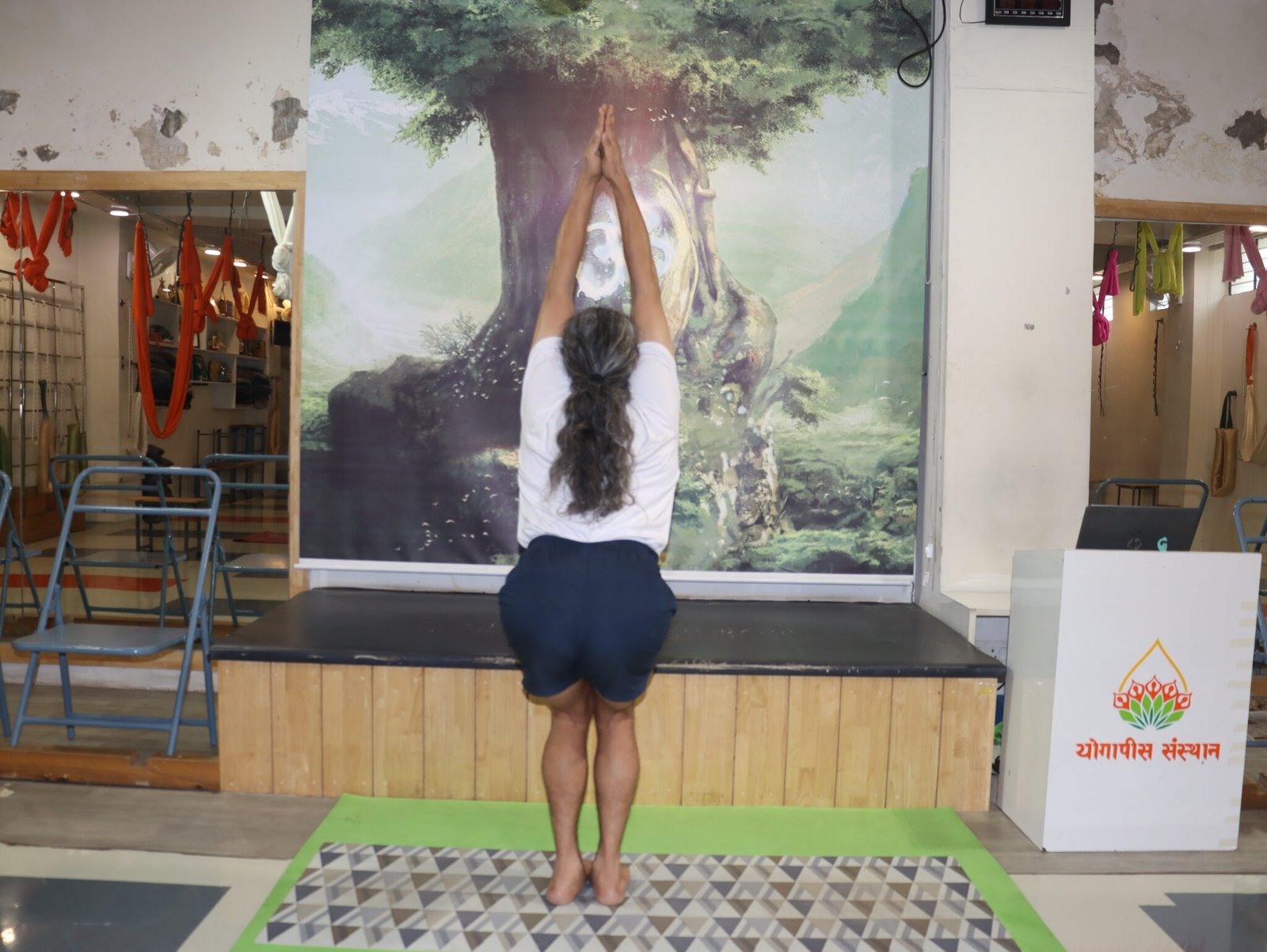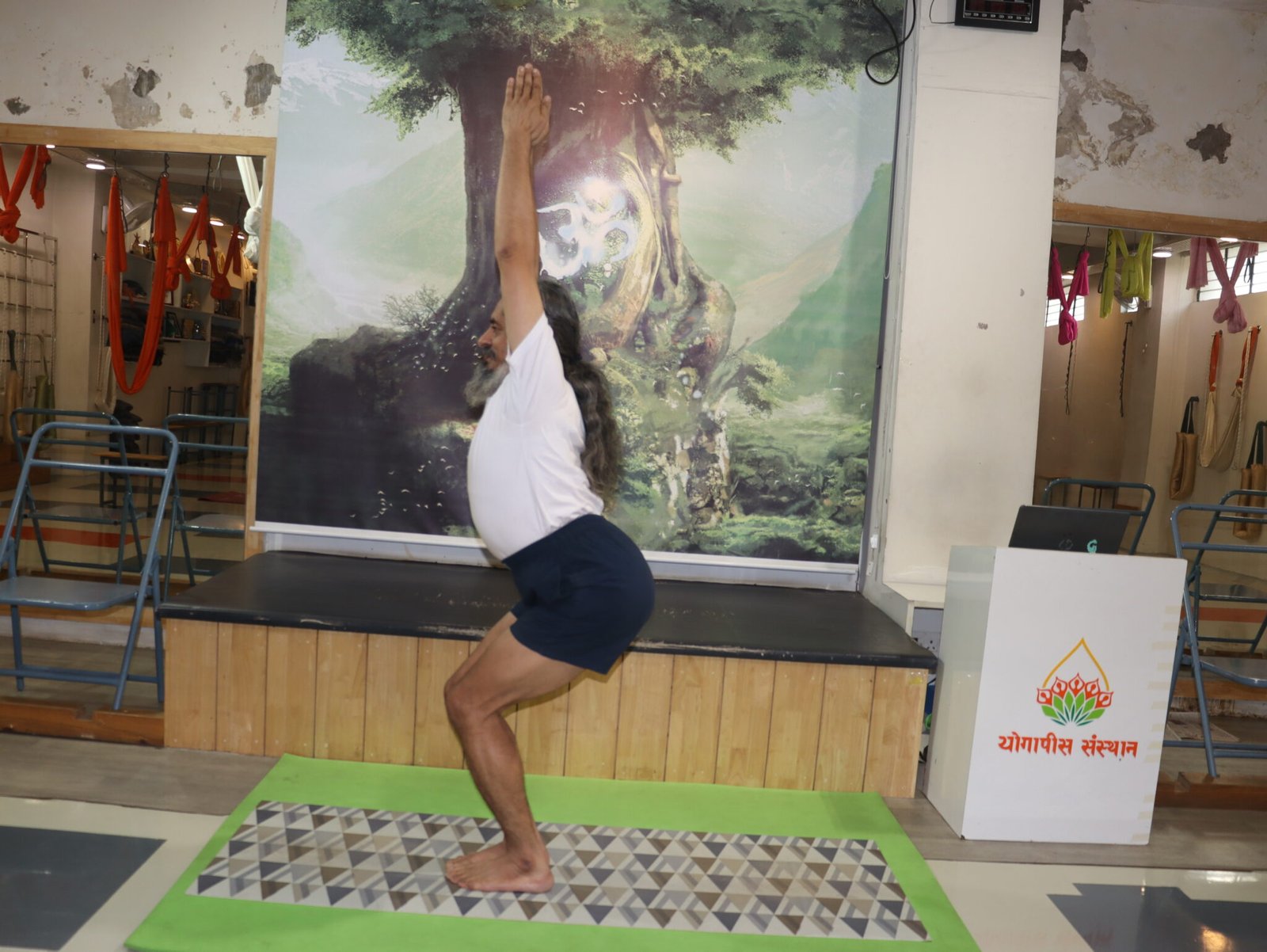 यह आसन ऐसे किया जाता है मानो आप एक काल्पनिक कुर्सी पर बैठे हों, इसलिए इसे चेयर पोज़ (Chair Pose) भी कहा जाता है।