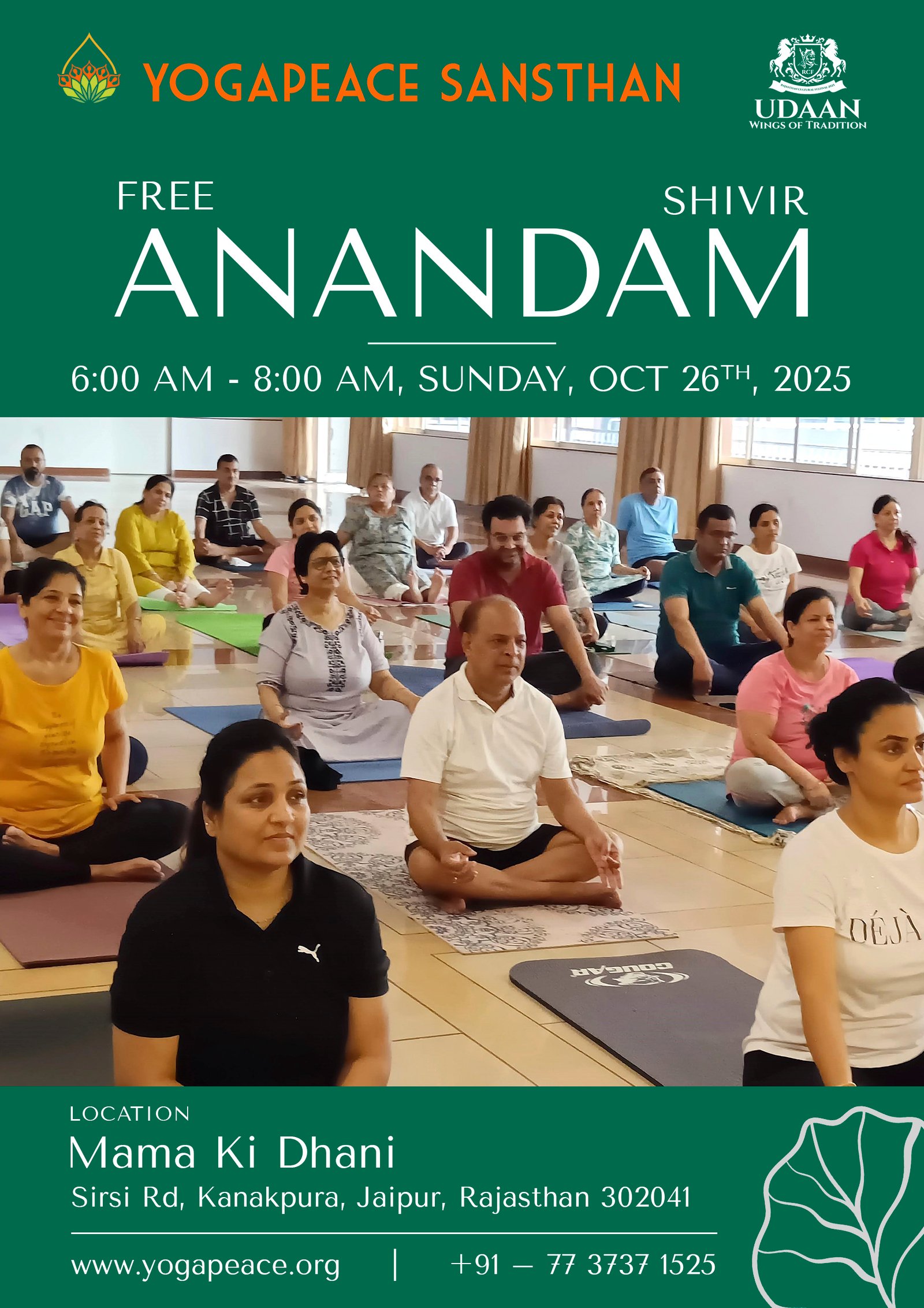 26 October @ 6:00 AM - 8:00 AM IST Anandam Shivir Mama ki Dhani, Sirsi Rd, Jaipur Mama ki Dhani, Sirsi Rd, Kanakpura, Jaipur, Rajasthan, India